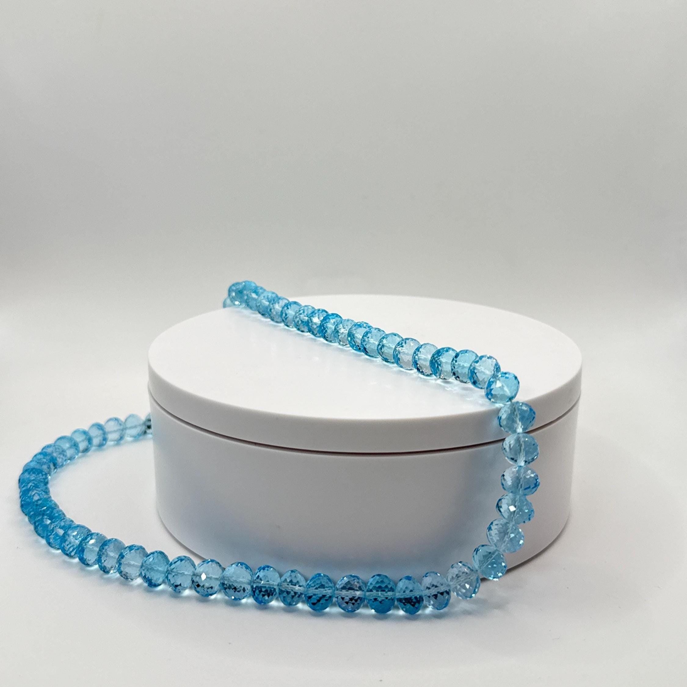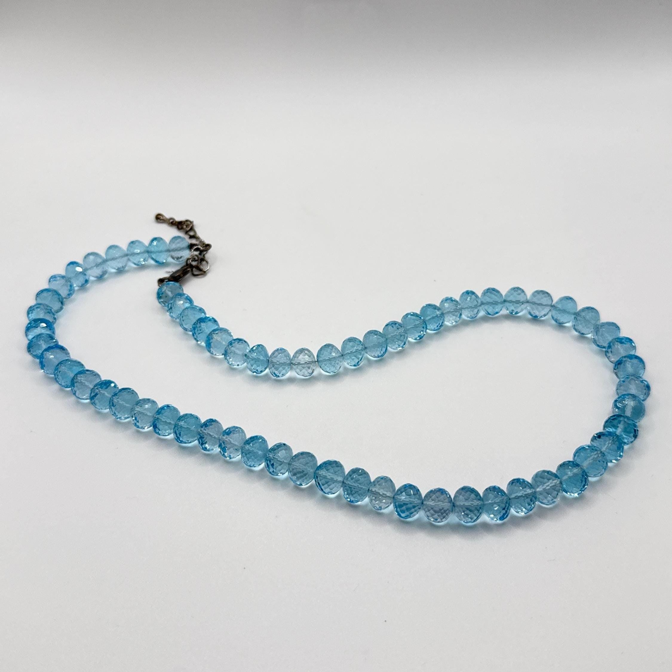 Swiss Blue Topaz Faceted Bead Necklace – Genuine Gemstone Radiance - 56.54 Grams