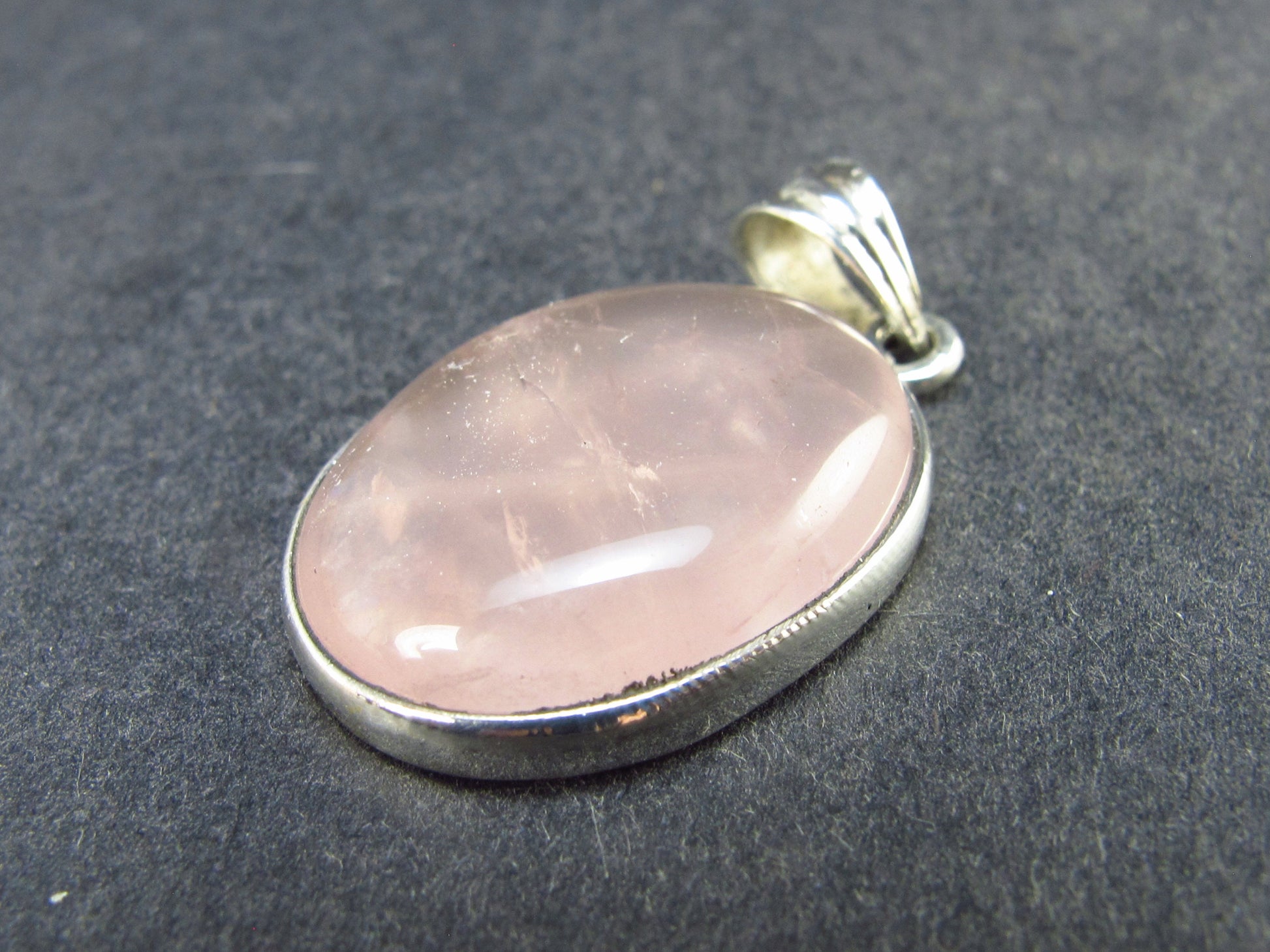 Beautiful cabochon oval shaped pink color translucent Rose Quartz pendant set in sterling silver 925.