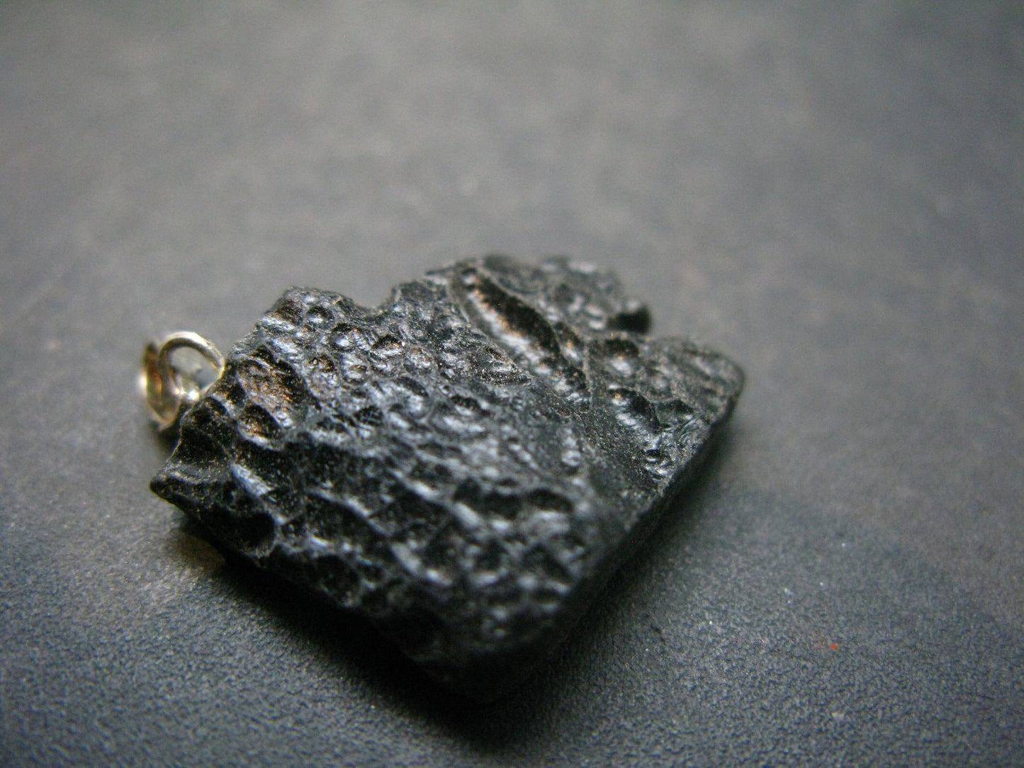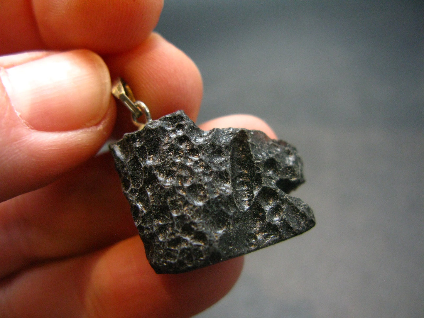 Tibetan Black Tektite Silver Pendant From Tibet - 1.0" - 3.42 Grams