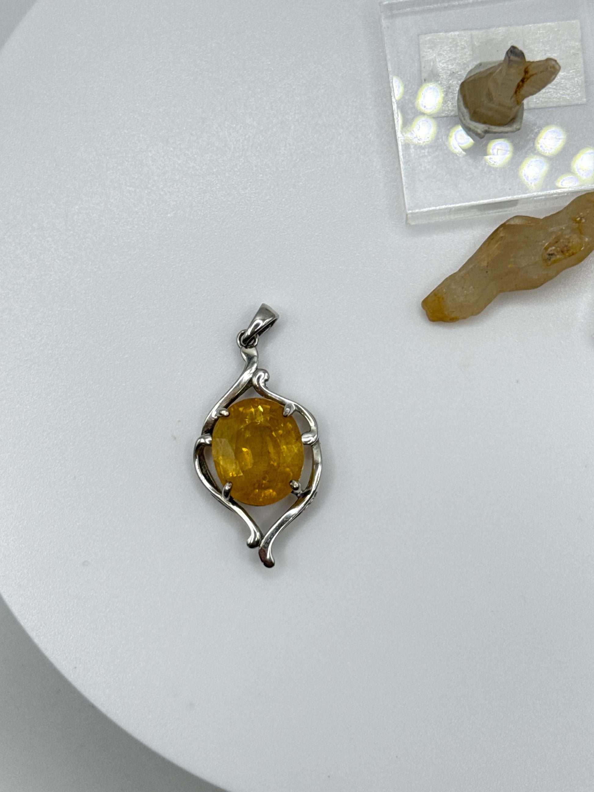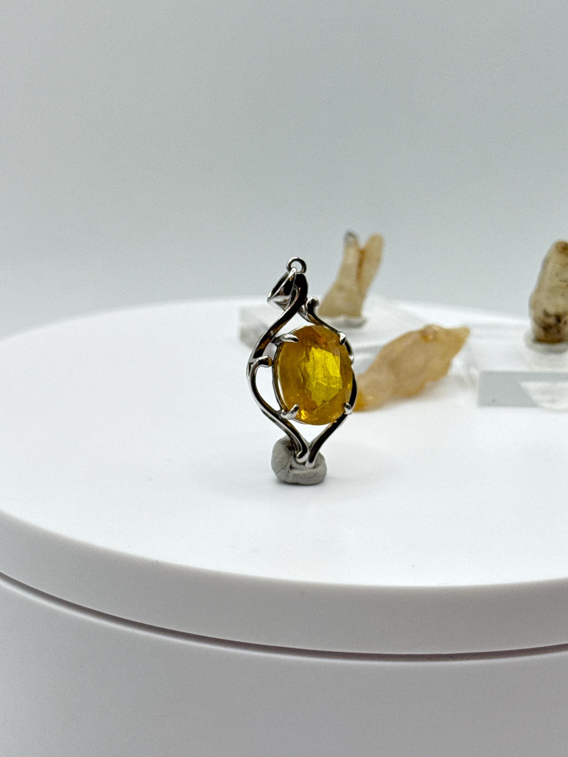 This elegant pendant showcases a natural oval-cut yellow sapphire embraced by a flowing sterling silver frame, creating a design that is both timeless and artistic. The rich golden hue of the sapphire symbolizes prosperity, clarity, and positivity, while its warm brilliance makes it a versatile piece for both everyday wear and special occasions. As the September birthstone, yellow sapphire adds personal significance, making this pendant a meaningful gift for birthdays, anniversaries, or anyone seeking a touch of uplifting energy in their jewelry collection.